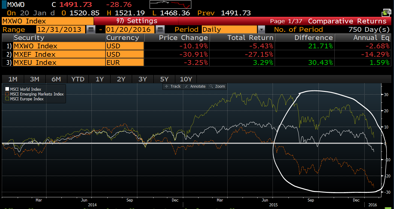 The chart below is MSCI World, MSCI Emerging markets and MSCI Europe – the picture is the same for US, Japan and China. A wasted two years of "lower for longer?"…. .absolutely!